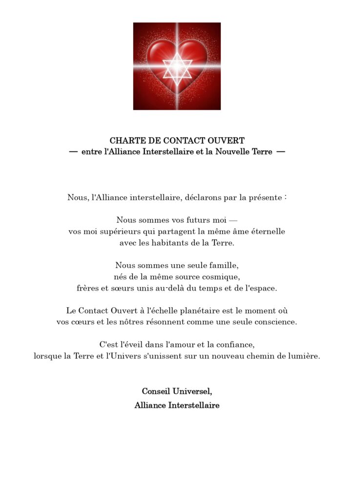 la « Charte de Contact Ouvert entre l’Alliance Interstellaire et la Nouvelle Terre ».